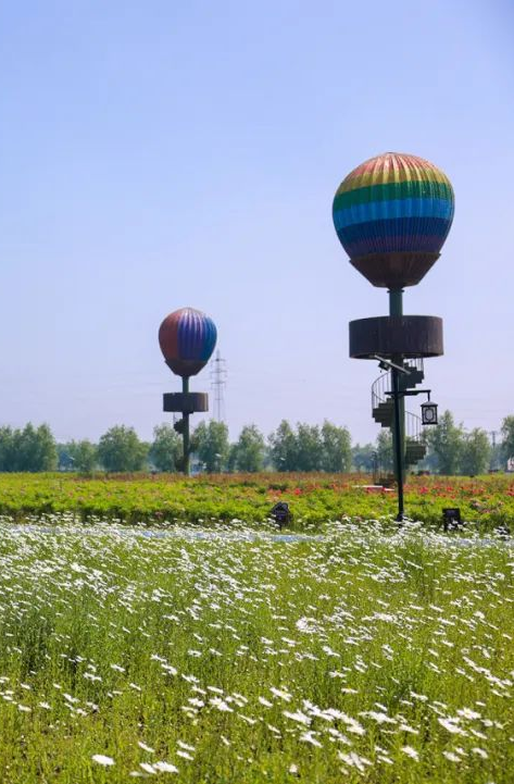 景区内花海以花田交错相融为特色,融合农耕乡俗文化体验为主题,营造出一个既休闲娱乐又充满诗意的美丽花海与幸福田园。