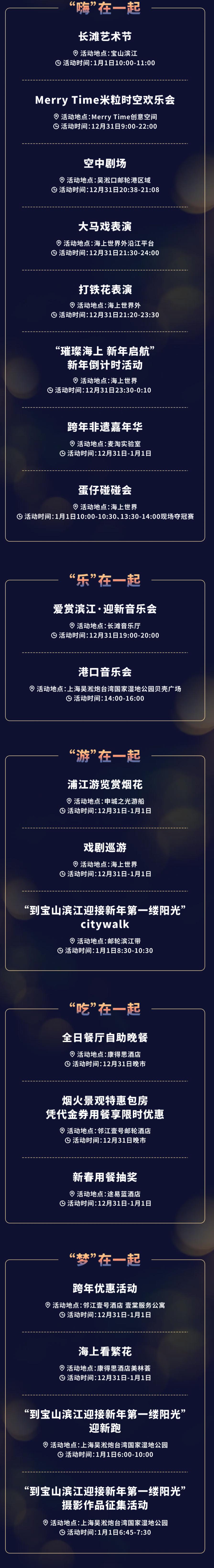 上下滑动查看所有活动上海国际邮轮旅游度假区以「2025在一起」为主题,于2024.12.31-2025.1.1期间打造“嗨在一起”“乐在一起”“游在一起”“吃在一起”“梦在一起”等缤纷活动。