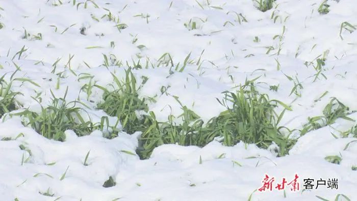 一场冬雪之后,在灵台县邵寨镇千亩冬小麦种植示范点,绿油油的小麦苗在雪中若隐若现。