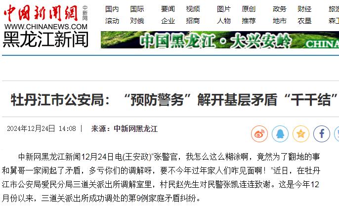【媒体关注|中国新闻网】牡丹江市公安局:“预防警务”解开基层矛盾“千千结”