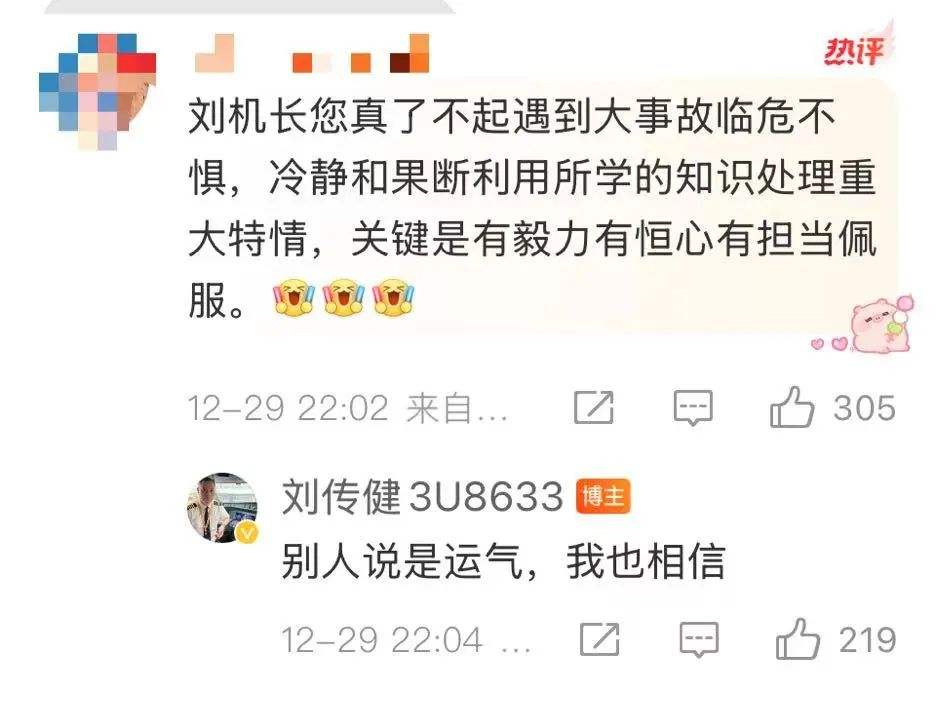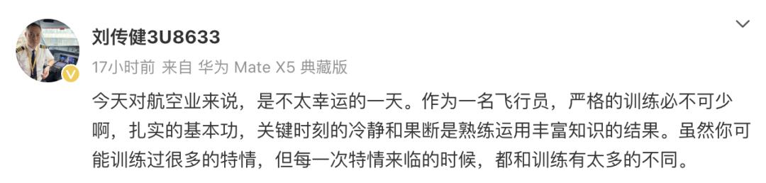 《中国机长》原型英雄机长刘传健就韩国客机失事发声