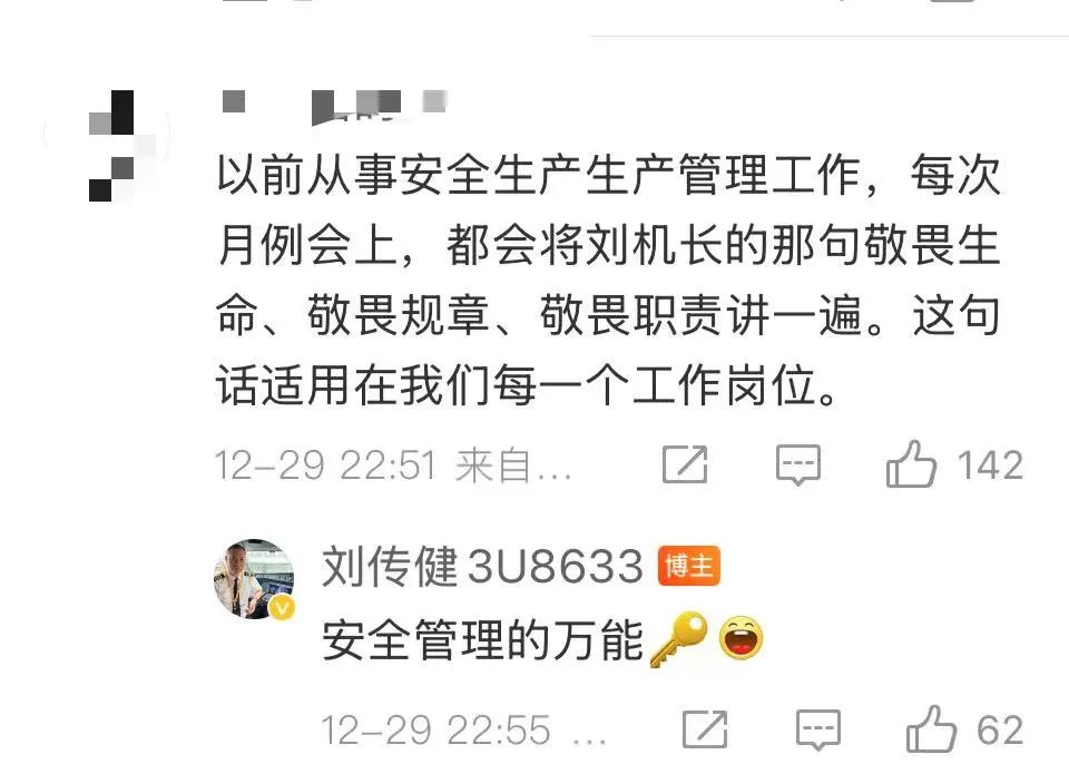 有网友表示,刘机长您真了不起遇到大事故临危不惧,冷静和果断利用所学的知识处理重大特情,关键是有毅力有恒心有担当佩服。