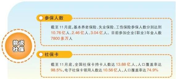 数字最有说服力。截至11月底,全国社保卡持卡人数达13.88亿人,人口覆盖率达98.5%,其中,电子社保卡领用人数达10.56亿人,人口覆盖率达74.9%;基本养老保险、失业保险、工伤保险参保人数分别达到10.76亿人、2.46亿人、3.04亿人。