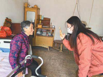 陕西省彬州市人社局工作人员上门为孤寡、残疾、行动不便的老年人群体进行养老保险待遇资格认证。