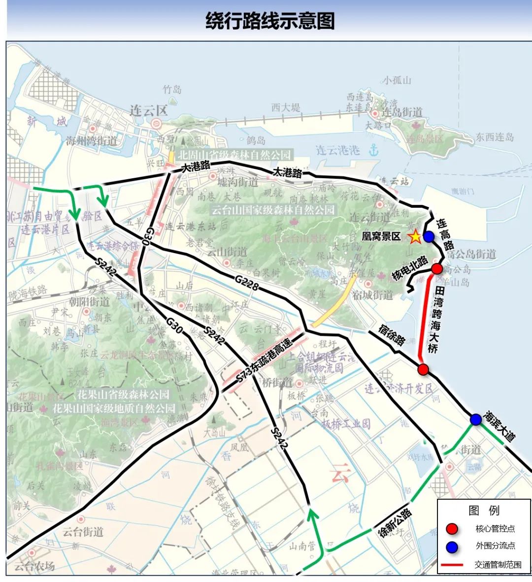 2、2024年12月31日18时起,引导中重型货车避开田湾跨海大桥,过往车辆可选择S242、G228、S73东疏港高速、G30连霍高速等道路绕行;