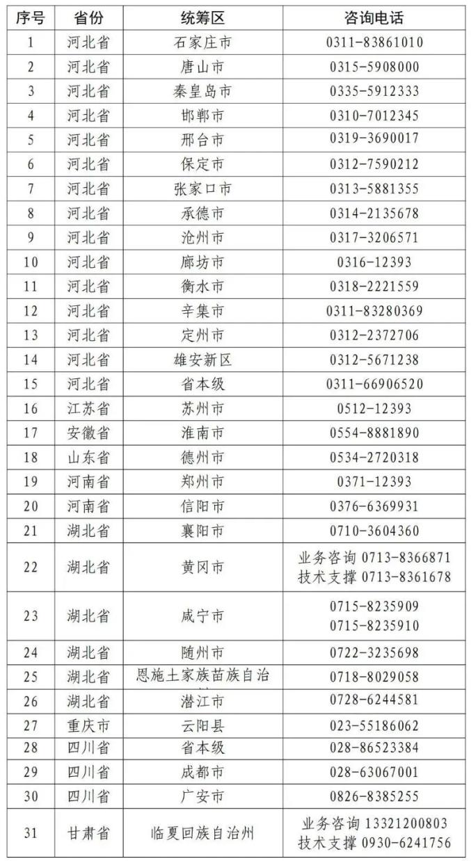 目前,全国已有31个地区(统筹区)已开通个人账户跨省共济使用,包括——