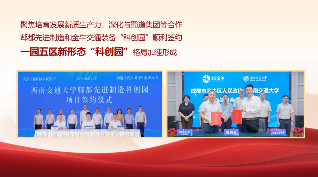 聚焦培育发展新质生产力,郫都先进制造和金牛交通装备“科创园”顺利签约,深化与蜀道集团等合作,一园五区新形态“科创园”格局加速形成。17