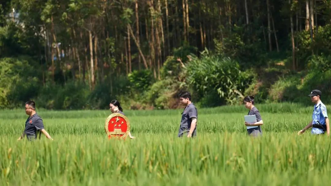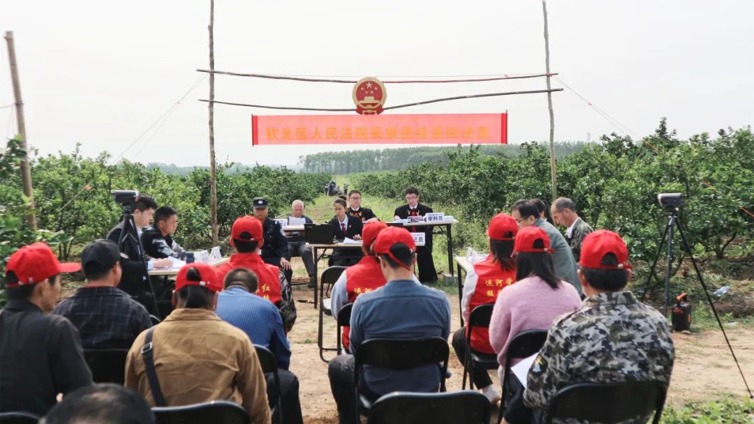 ▲李钦城(左一)与同事们背着国徽行走在乡间田野,巡回下沉办案最让我开心的是,今年我成功调解了一件涉及2000亩林地的山林土地纠纷案件,啃下一个难啃的“硬骨头”。案件的起因是14年前某村委会一村民小组取得林权证后,将涉案的2000亩林地发包出去引发纠纷。村民打了5年的官司,确认涉案林地归5个村民小组共同共有。承包合同是否有效,是否应该赔偿另外4个村民小组的损失?案件到我手上。审理过程中,我深入村里,用壮语和村民们沟通,深挖矛盾起因和掌握双方诉求。又找到原承包方及其亲属,迂回协商。经过一年的多次反复协商,最终促成各方达成调解协议,原承包方补偿村民费用,合同继续履行,双方都表示满意。村民们的心结解开后,看见我都会笑呵呵地打招呼。