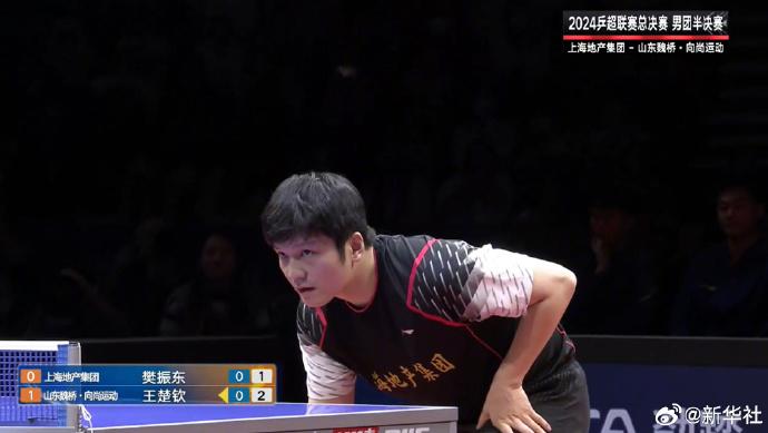 上海地产集团俱乐部在前两盘以0比2落后山东魏桥俱乐部。山东魏桥的林昀儒/梁靖崑在首盘男双比赛以3比1击败许昕/周恺,王楚钦在第二盘男单比赛以3比1战胜樊振东。二人此前曾经在乒超联赛第一阶段循环赛交手,当时樊振东以3比1获胜。