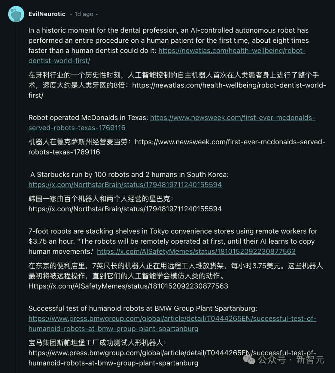 有人则反驳道,你低估了现如今机器人的现状,并甩出了一长串,关于机器人走进岗位的各种报道。