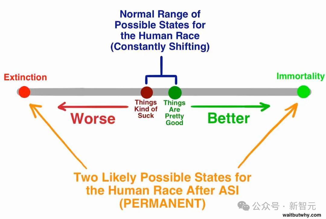 而ASI诞生之后的人类,只有两种可能:要么「走向永生」;要么「走向灭绝」。
