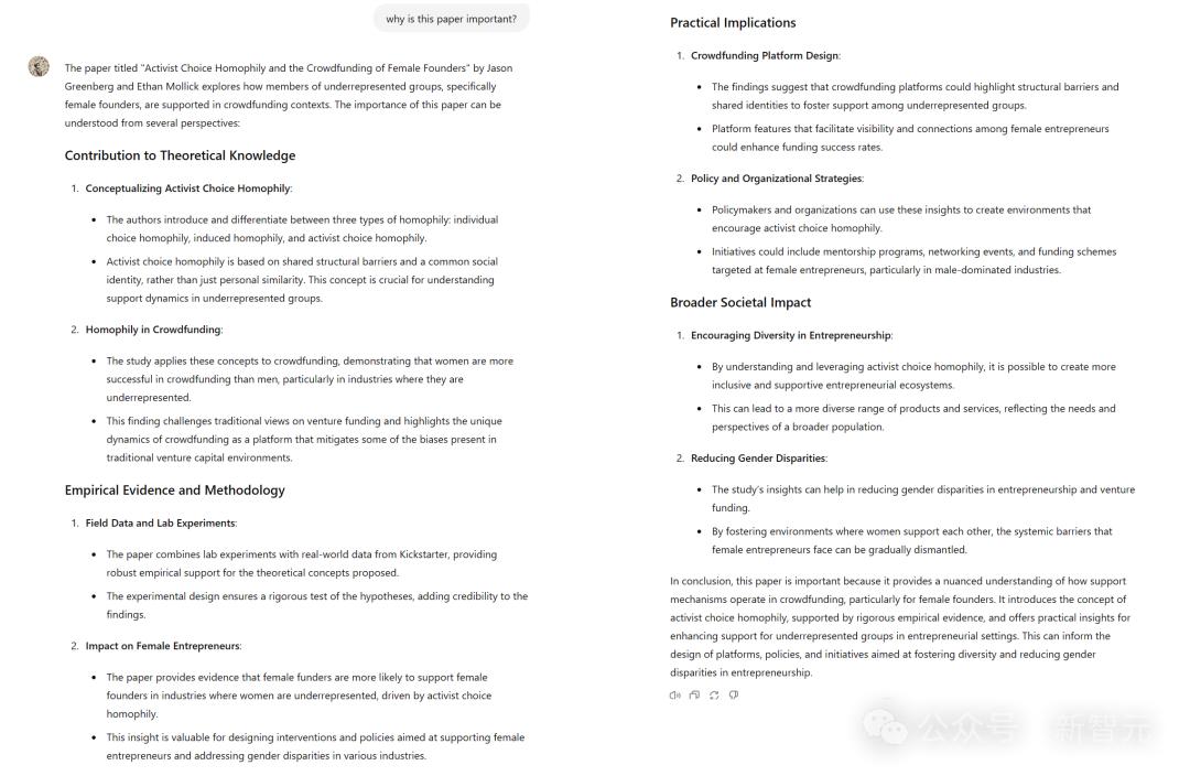 比如,当你给之前提到的「定制GPT」投喂一篇论文之后,它不仅可以解释其中的含义并总结关键结果,而且还可以告诉你,为什么这篇学术论文可能也与你有关。