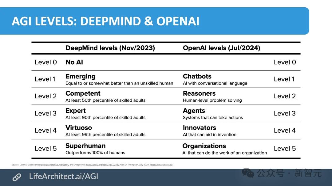在2023年末和2024年中,DeepMind和OpenAI分别放出了对于AGI等级的定义。我们亲眼见证了,今年的AI如何在逐步攀升AGI高峰。