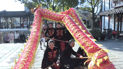 上午10点,青溪老街上已经人头攒动,热闹非凡。在望海楼前,舞龙队身着华丽的服饰,手持五彩斑斓的龙身在石板路上翻腾跳跃,吸引了不少市民游客驻足观看,小朋友蹦蹦跳跳拍手鼓掌,大人们也用手机、相机纷纷留下这个美好的时刻。不仅如此,舞龙队队员还邀请市民游客参与表演,举着龙柱,亲身感受舞龙的乐趣,无论男女老少都喜出望外,纷纷主动上前感受传统文化的魅力。住在老街的居民也被氛围所吸引,走出家门,加入到欢乐的人群中,和游客一起享受这一刻。