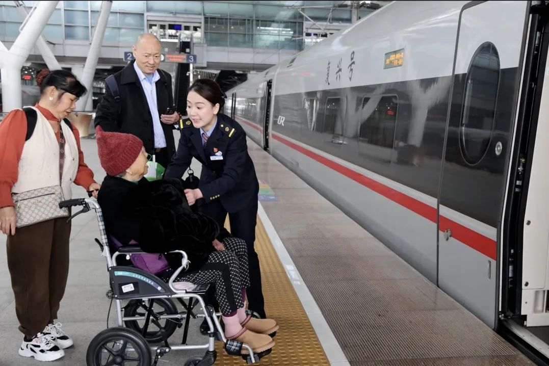 10时05分,G544次列车到站。张雨茜来到指定位置,搀扶老人到轮椅上,轻声询问对方的身体状况,并接过其家属手里的衣服,披在老人身上:“一会儿我们要前往另一个站台,我带您过去,别担心。”交谈得知,旅客刘先生在珠海经商,正逢假期,便带母亲和2个姐姐从珠海返回老家泉州,为了让母亲旅途舒适,选择了乘坐高铁。