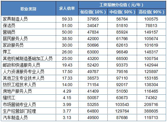 不过,例如家具制造人员、邮政和快递服务人员、保洁员、缝纫工等,这些基础性的岗位市场招聘需求较大,但这些职业通常不需要特别高的教育背景或专业技能,入职门槛相对较低,薪资水平偏低。