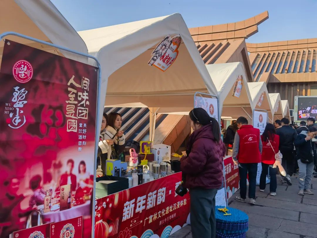 广富林文化遗址副经理刘茜介绍,在2025迎新活动中,公园充分融合商旅文体展,将千年历史地标与非遗婺剧相结合,在为游客带来沉浸式戏剧体验的同时,还让大家了解了当地的特色美食文化,可谓一举多得。