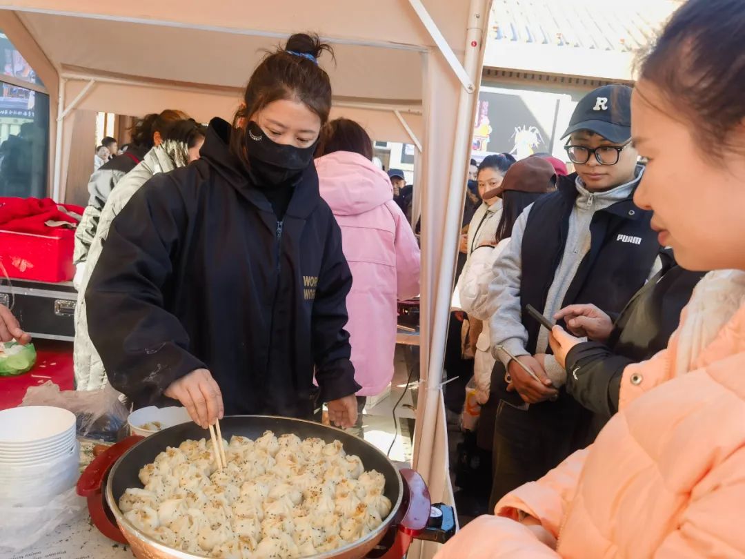 午饭过后,广富林文化遗址内的三厅广场上就热闹起来了。在搭好的戏台前,有市民早早来到现场,一边晒太阳一边聊天。旁边来自金华永康的美食摊点上,鲜香扑鼻的烤包子、肉麦饼吸引了不少市民排队购买,还有各式各样的特色点心、糖果等休闲食品,试吃、购买的市民络绎不绝。“好几个品种都卖断货了,没想到我们的特色小吃这么受欢迎。”摊点负责人何先生说。