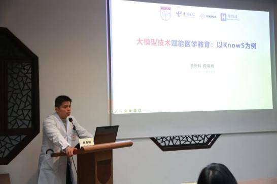 华山医院普外科周易明副主任医师现场演示了他作为主要发起人联合开发的AI小程序“KnowS”,面对临床发展迅速而教材及知识库更新滞后、无序的现实困境,他自2016年起参与自主研发面向医务人员的AI程序,通过构建一个跨学科实时更新的权威知识库,解决了一般大模型的幻觉问题,并具备自然语言提问式跨库搜索、一键生成综述和PPT等功能,对临床医生开展基于病例信息的诊疗辅助,基于临床问题的科学研究开展具有实际意义。他同时分享了AI在医学教育,尤其是基于病例的学习(CBL)中的一些已实现应用场景及未来的展望。