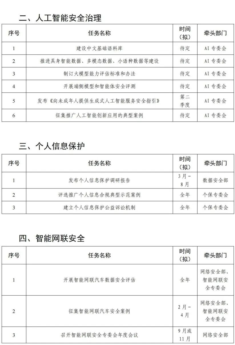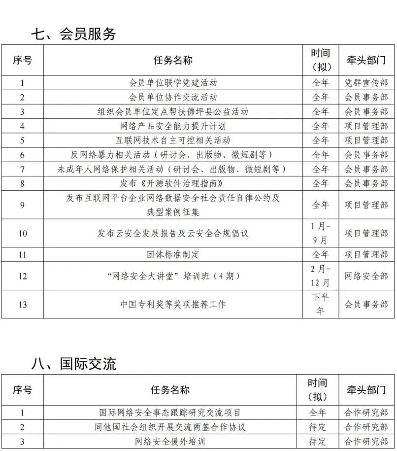 2025年,网安协会将围绕中央网信办重要活动支撑、人工智能安全治理、个人信息保护、智能网联安全、关基安全保护、网络安全人才培养、会员服务、国际交流等八个方面开展工作,具体任务内容附后,请各会员单位参考。