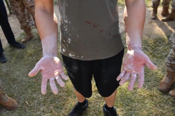 在最后的30秒内兰印斌强忍着肌肉酸痛