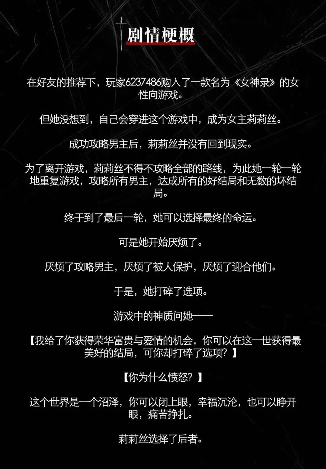 在虚拟与现实交织的“女神录”游戏世界中,莉莉丝不想再扮演被规定好结局的角色,她要以手中之剑劈开属于自己的道路。