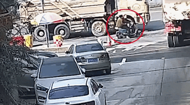 ●梅州一女子骑自行车闯入货车前方盲区,险些被碾。
