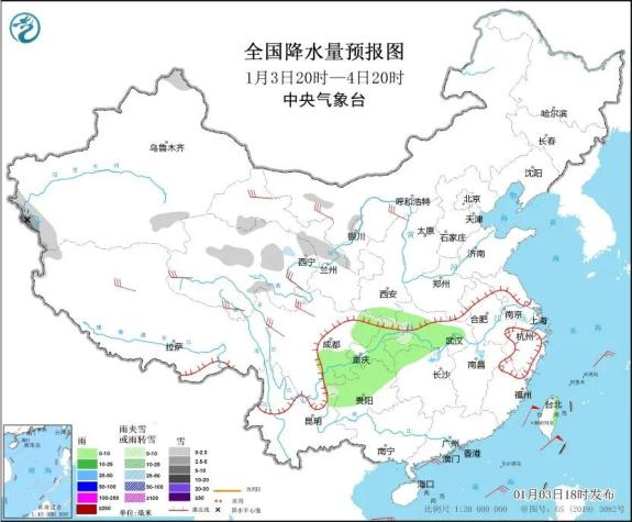 3日20时至4日20时,新疆北疆北部和南疆西部山区、西藏西部、青海中部和东部、甘肃河西和中部、陕西南部、湖北西部、四川盆地东北部、重庆北部、贵州西部等地部分地区有小雪或雨夹雪。温馨提示:近期北方地区及青藏高原等地风力强劲,风寒效应显著,建议公众减少户外活动,做好防寒保暖措施。