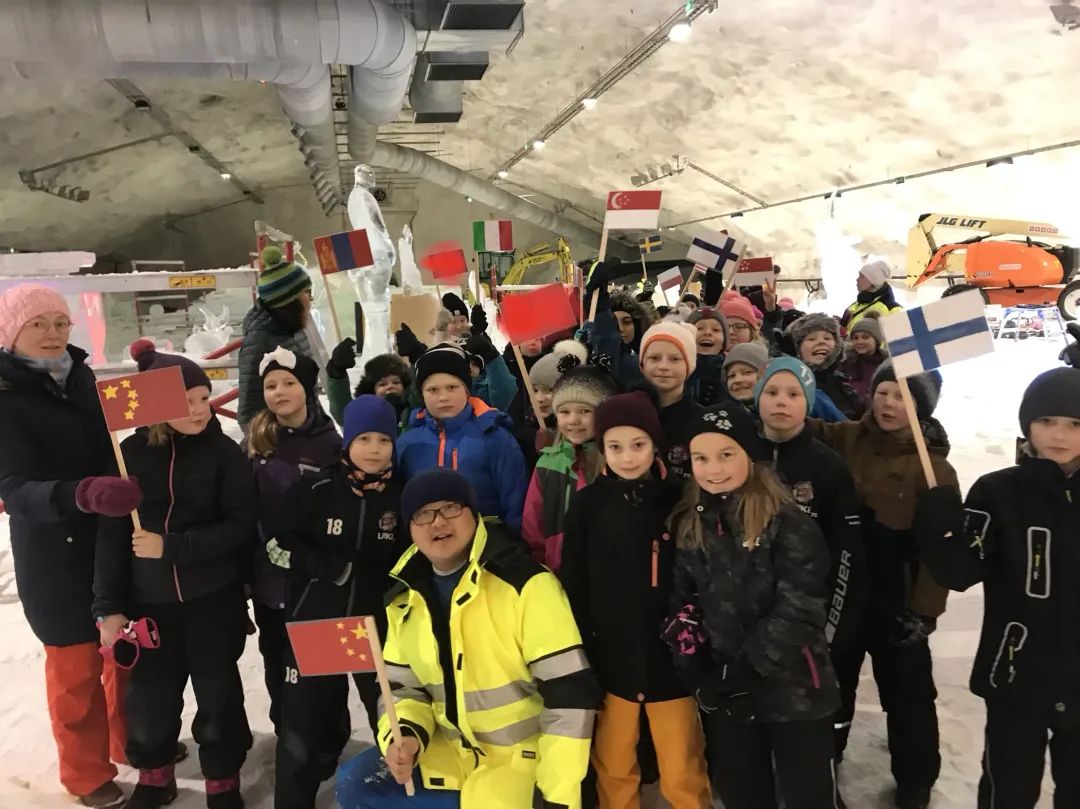 △参加芬兰赫尔辛基国际冰雕比赛,与当地小朋友分享冰雪故事