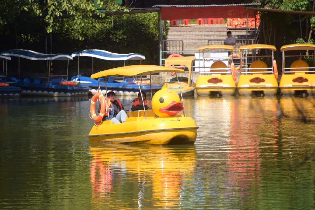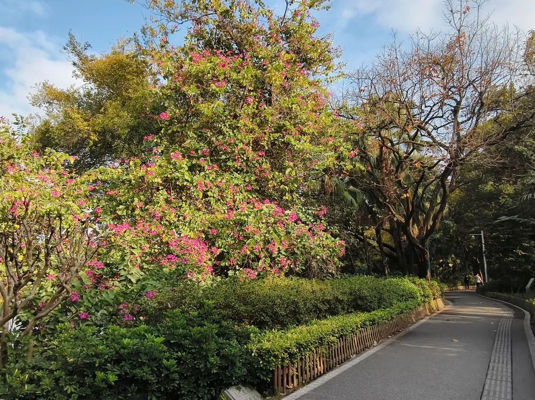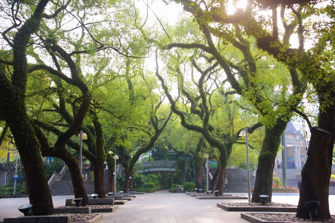中山公园内植被茂密,现有植物种类300多种,其中榆树、罗汉松、樟树、榕树等25株被纳入佛山市古树名木。近期,红花紫荆也迎来了盛花期,多处可见紫红色的花海。此外,公园内湖泊宽广,水景丰富,可泛舟湖上,欣赏秀丽湖光。