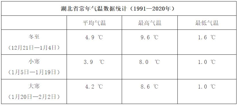 从湖北省常年(1991-2020)气温来看,一般小寒和大寒节气所处的1月份,正好囊括了“三九四九”,这两个时段的平均气温、平均最低气温和平均最高气温都是一年中最低的时候,而且小寒似乎比大寒还要冷上那么一丢丢。