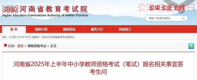 近日,河南省教育考试院发布2025年上半年中小学教师资格考试(笔试)报名相关事宜答考生问,详情如下。