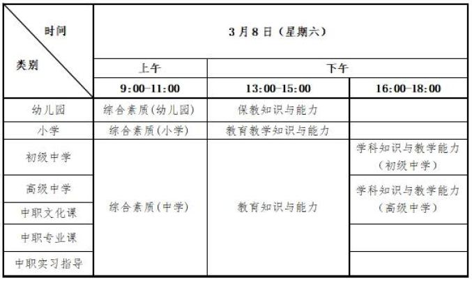 答:全国统一考试日期为2025年3月8日,各类别考试科目与时间安排如下:
