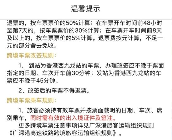 乘客在购买武汉至香港西九龙高铁车票时,12306页面上有明显提示:需有效的出入境证件及签注。