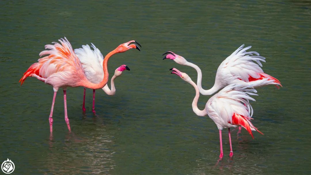 有意思的是水禽湖。湖里饲养有火烈鸟,其中大部分是粉腿浅粉白身的大红鹳,这个种原产自旧大陆,从非洲、南欧到南亚、中亚都有,近年来通过新疆逐渐零星的在向内地扩散。但这白色的群体里,有一个个体特别红,那是美洲红鹳或者叫古巴火烈鸟,主要原产自中美洲。这独独一只美洲红鹳特别有意思。我去的时候,偶然看到两只大红鹳——看起来是一对公母——突然对着一只个头较小的大红鹳叫嚣起来,堵着它连连后退。这时,那只美洲红鹳突然冲了出来,把那一对欺负鸟的公母给吼跑了。