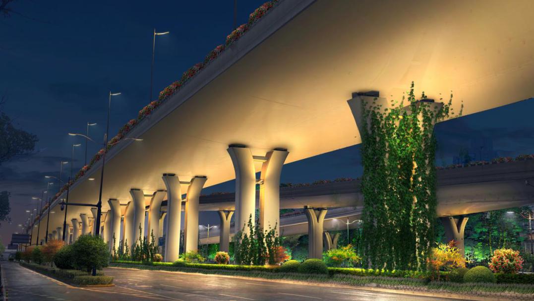 针对两条交通型街道,设计团队提出了“快与慢相融的景观街道”理念。在保障慢行安全和机动车高效通行的前提下,对绿化景观、城市家具、照明设施等进行细节化、精细化设计,打造高效安全、绿色便捷、富有活力的街道场景。