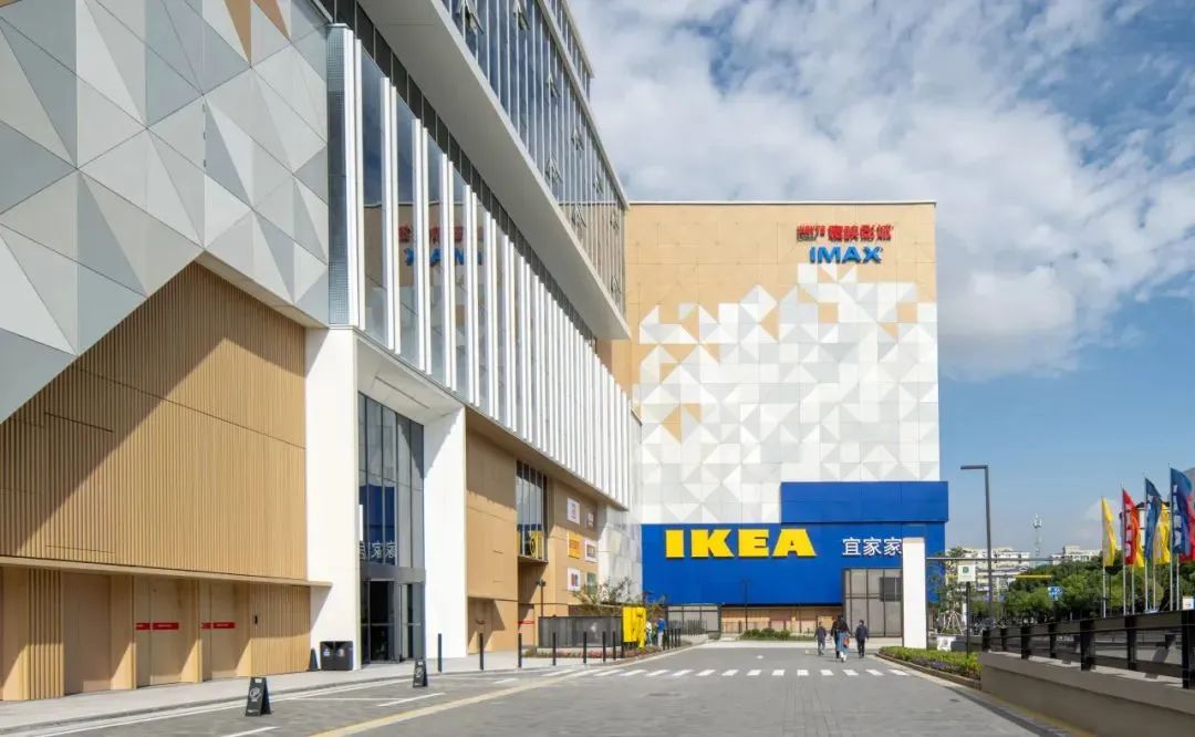 上海宜家荟聚购物中心的建筑设计独具匠心。其形体融合宜家特色与北欧风光元素,创造出丰富的体块进退关系和多首层、室外休憩空间。
