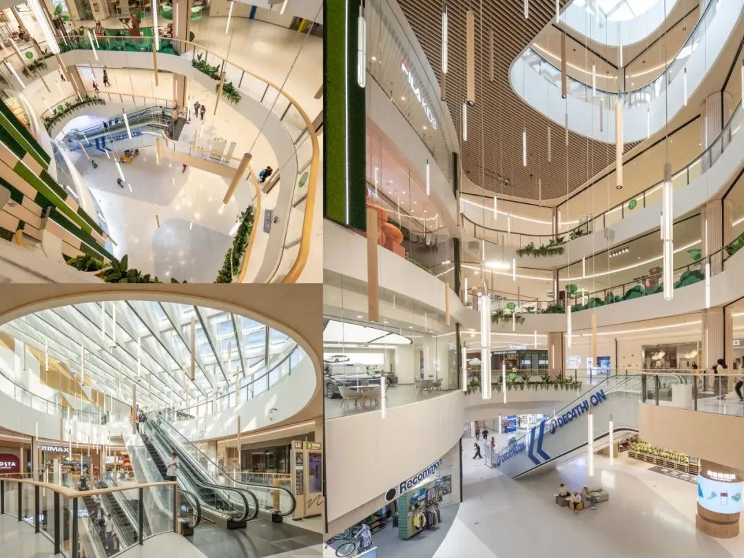 商业室内汲取北欧自然灵感,最大程度地实现自然采光。通过“山川”“河流”“森林”为主题的商业公共空间,抛开日常琐碎,营造轻松游逛的全年龄段游乐场,打造与亲朋好友共度时光共同成长的灵感交流。