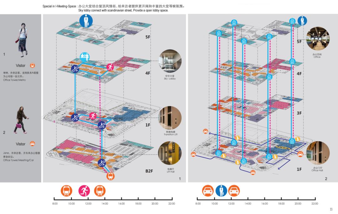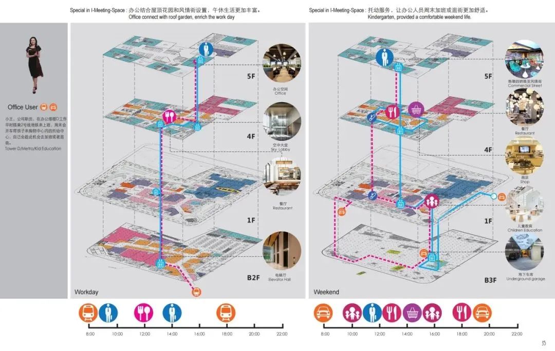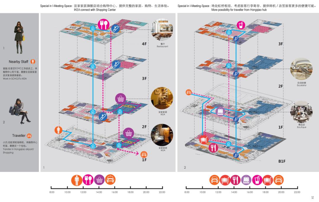 在深化设计阶段,通过分析不同顾客的使用场景,团队优化了室内空间布局及流线关系,特别是涉及电梯转换的区域,规划了超过20种的专属流线,创造宾至如归的“宜聚”体验。