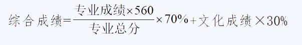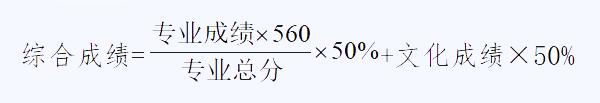 艺术、体育特长生均实行综合成绩录取,综合成绩由文化成绩和专业成绩组成,满分为560分。