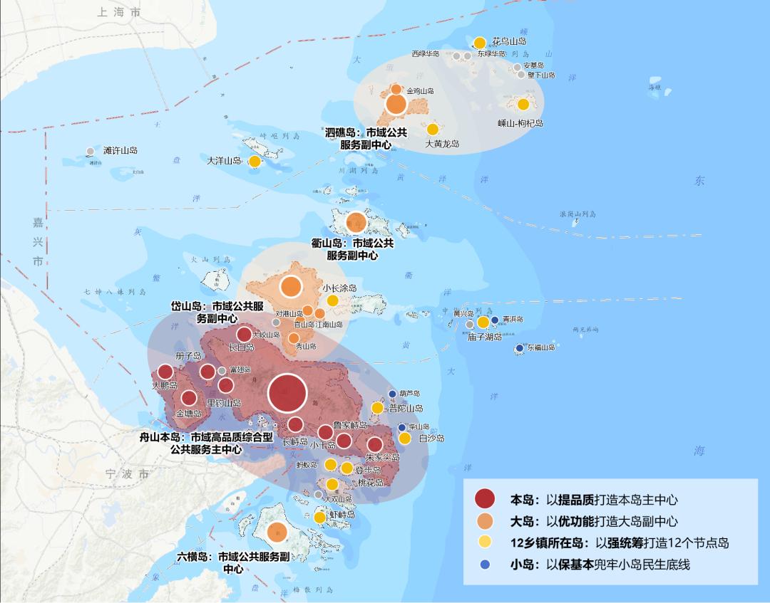 “1+4+N”中的“1”为舟山本岛(含本岛及相连岛屿);“4”包括岱山大岛(含岱山岛及相连岛屿)、泗礁大岛(含泗礁岛及金鸡山岛)、六横岛和衢山岛;“N”为其余的乡镇节点岛和有人居住小岛。
