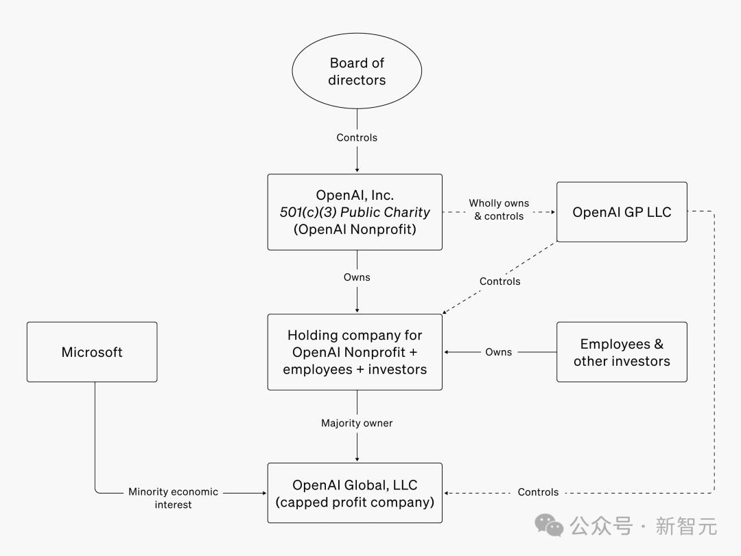 OpenAI目前的架构之前的董事会坚信AGI可能出错,我认为他们的坚持和担忧都是坦诚的。比如,在那个周末,董事会某个成员对这里的团队说:「摧毁公司可能也符合非营利董事会的使命」。这句话引来了大家的讥讽,但我认为这才是信念真正的力量。我相信她说这话时是认真的。虽然我完全不同意具体的结论,但我尊重这份理想和坚持。我认为上一届董事会的行为出自真诚但错误的信念,毕竟他们认为AGI已经触手可及,而我们没有对它负责。我尊重他们的出发点,但对具体做法完全不能苟同。