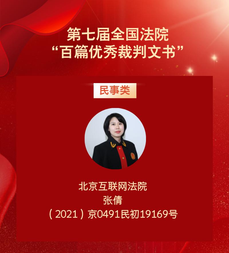 喜报!北京互联网法院两案分获第七届全国法院“百篇优秀裁判文书”“百场优秀庭审”