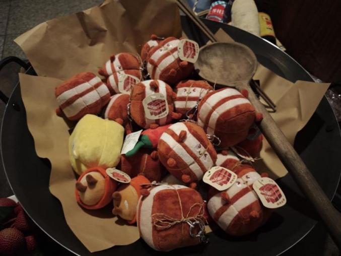 “如见丨一蓑烟雨·苏轼展”上的毛绒文创。新华网 丁梓朔 摄2024年,这种看上去有些幼稚的无实物表演形式风靡全国,与之密不可分的毛绒文创掀起了市场新风暴。首先出圈的是今夏甘肃省博物馆推出的麻辣烫毛绒产品,其搭配“过家家式”互动体验,迅速火爆全网并蔓延开来。西安“绒馍馍”、新疆馕饼子、苏州“蟹黄黄”、杭州葱包烩、天津煎饼馃子、北京稻香村糕点、福州佛跳墙等毛绒产品遍地开花。在社交平台上,#中国人有自己的jellycat# #万物皆可毛绒#成为热门话题。