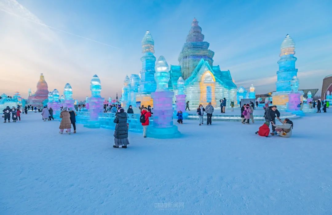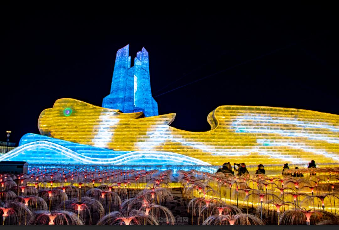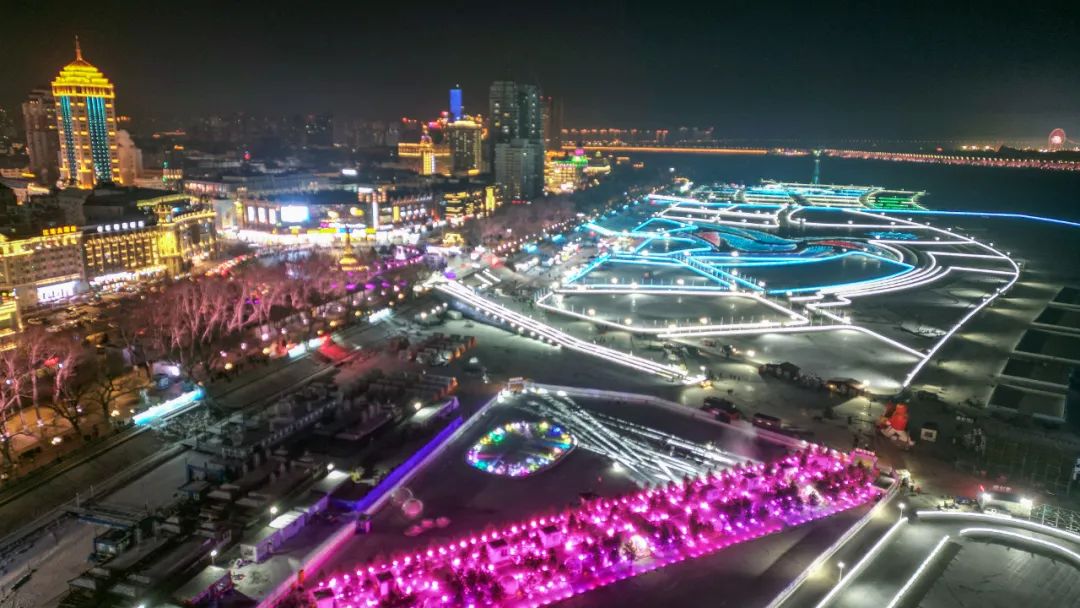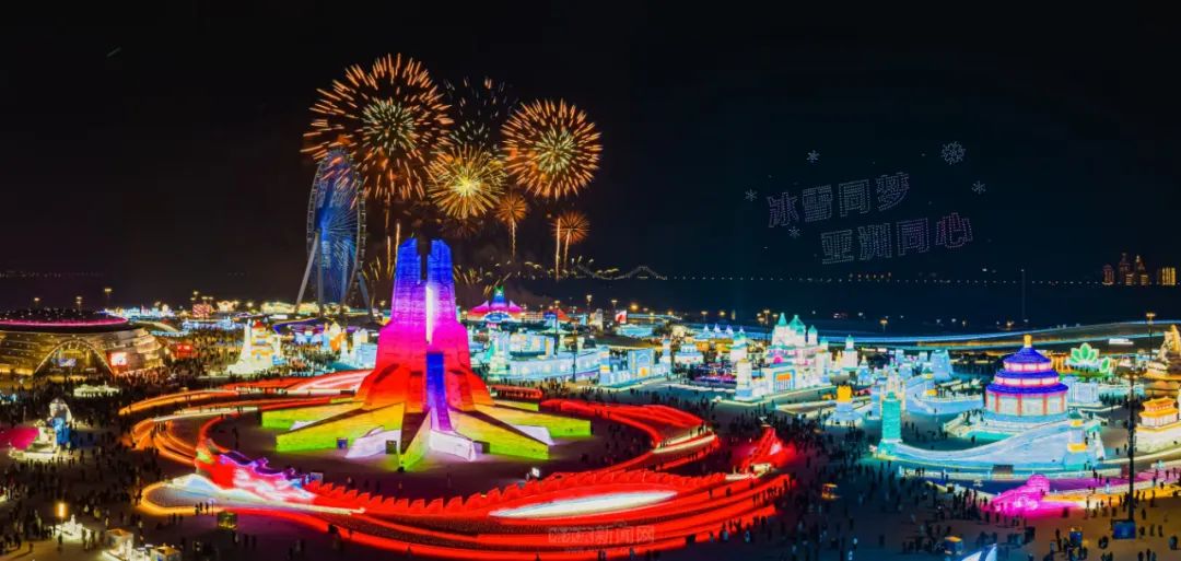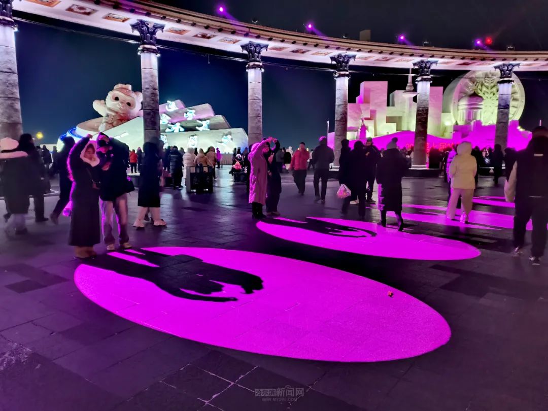 冰雪大世界的夜晚,构筑起旖旎绚烂的奇幻梦境。