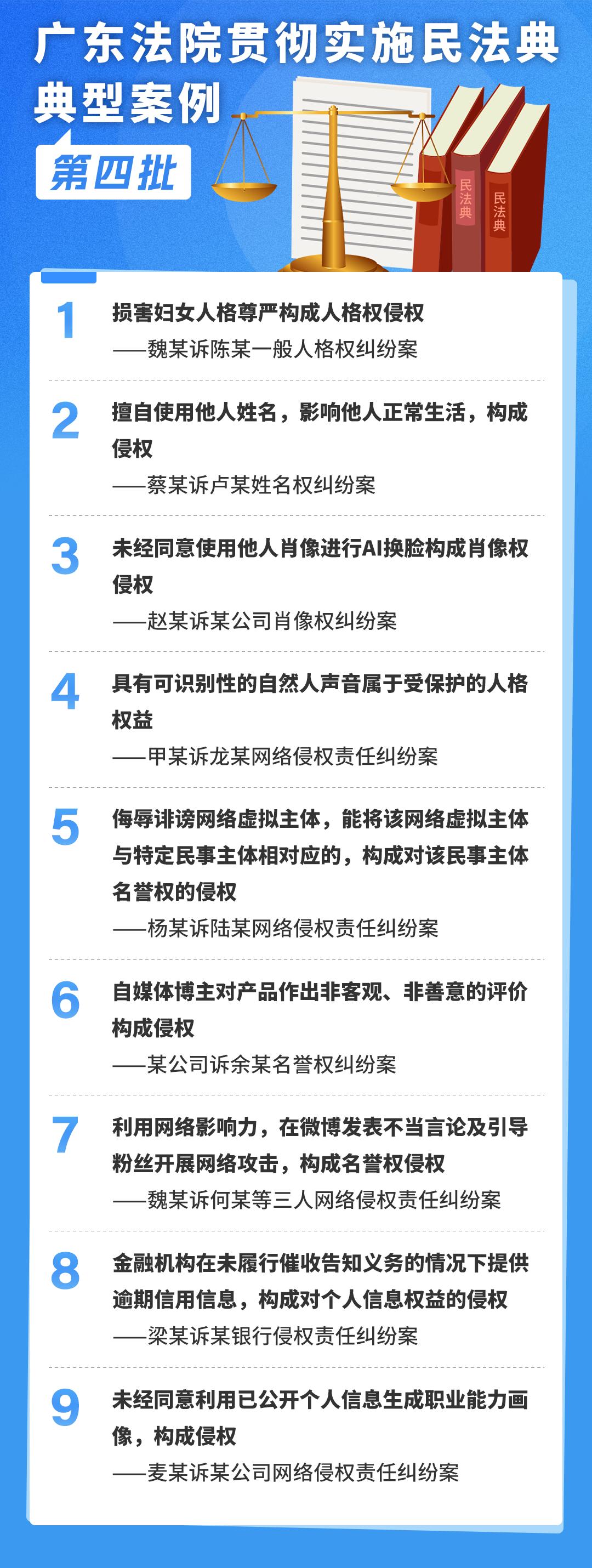 原标题:《广东高院发布贯彻实施民法典典型案例!涉妇女人格尊严保护、“AI换脸”等热点问题》