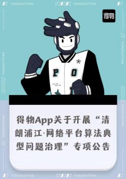 请扫码查看专项行动治理公告反馈渠道:得物APP-我-设置-反馈与建议-算法推荐专项举报