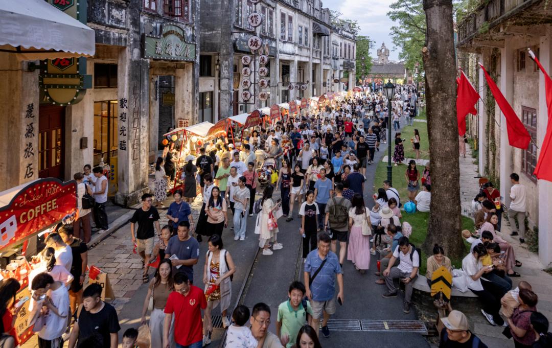 △蓬江区长堤历史文化街区“人从众”。江门日报记者 郭永乐 摄