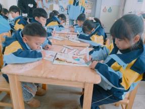 “哇......”,在一阵阵惊叹声中,孩子们迫不及待地挑选自己喜爱的角色材料包,并兴致勃勃地开始动手制作。他们发挥自己的想象力,在底板上涂以绚丽的色彩,接着将各个配件抠出,最后再将胳膊、腿等关节处固定,安装上操作杆。这些原本静态的皮影戏人物,在孩子们的巧手之下瞬间变得生动活泼。
