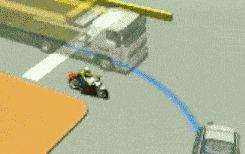 如果行人或摩电车辆过于靠近大型车辆右侧通行,进入盲区,极易带来致命危险。
